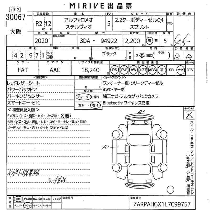ALFA ROMEO STELVIO 2020 г., лот № 30067