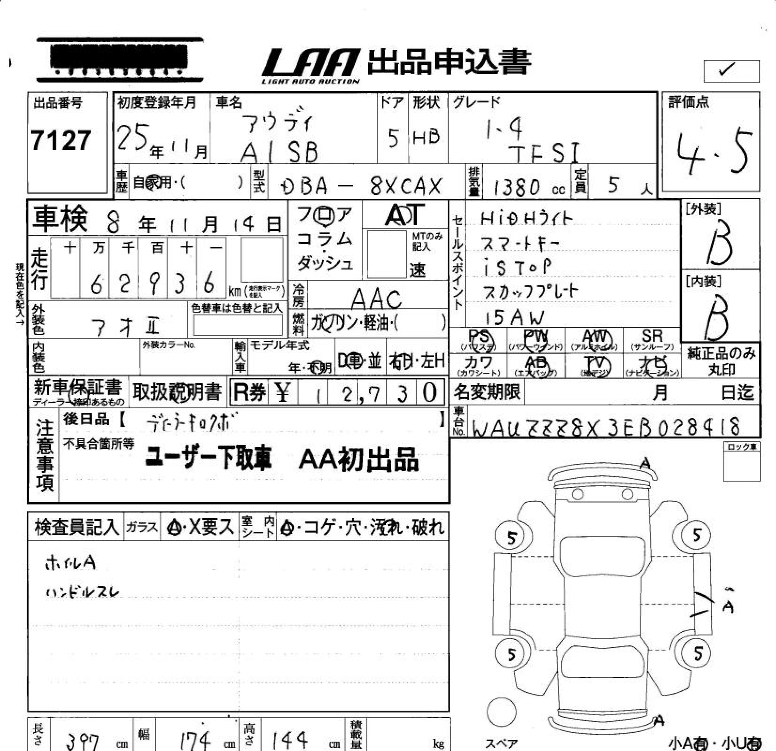 | 1.4 TFSI | DBA-8XCAX | CAX | FF | 7AT | 1389cc | 122ps(90kW)/5000rpm | AИ-95 | 2 930 000 |
