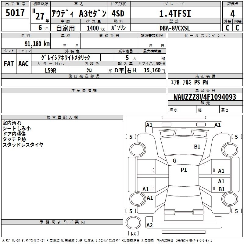 | 1.4 TFSI | DBA-8VCXSL | CXS | FF | 7AT | 1394cc | 122ps(90kW)/5000~6000rpm | AИ-95 | 3 460 000 |