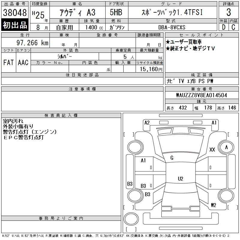 AUDI A3 2013 г., лот № 38048
