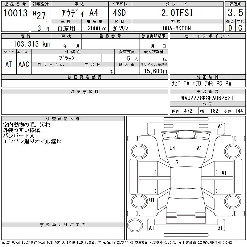 | 2.0TFSI QUATTRO | DBA-8KCDNF | CDN | Full-time 4WD | 7AT | 1984cc | 211ps(155kW)/4300~6000rpm | AИ-95 | 5 540 000 | |