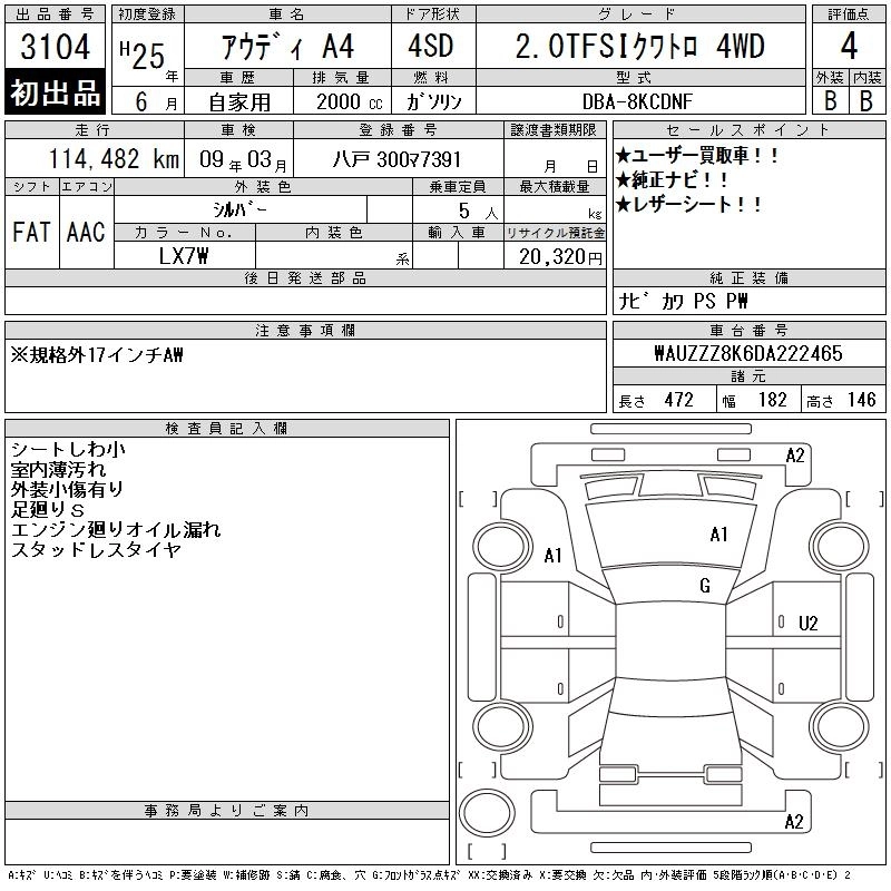 | 2.0TFSI QUATTRO | DBA-8KCDNF | CDN | Full-time 4WD | 7AT | 1984cc | 211ps(155kW)/4300~6000rpm | AИ-95 | 5 230 000 | |