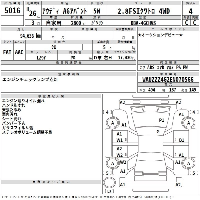 AUDI A6 AVANTE 2014 г., лот № 5016