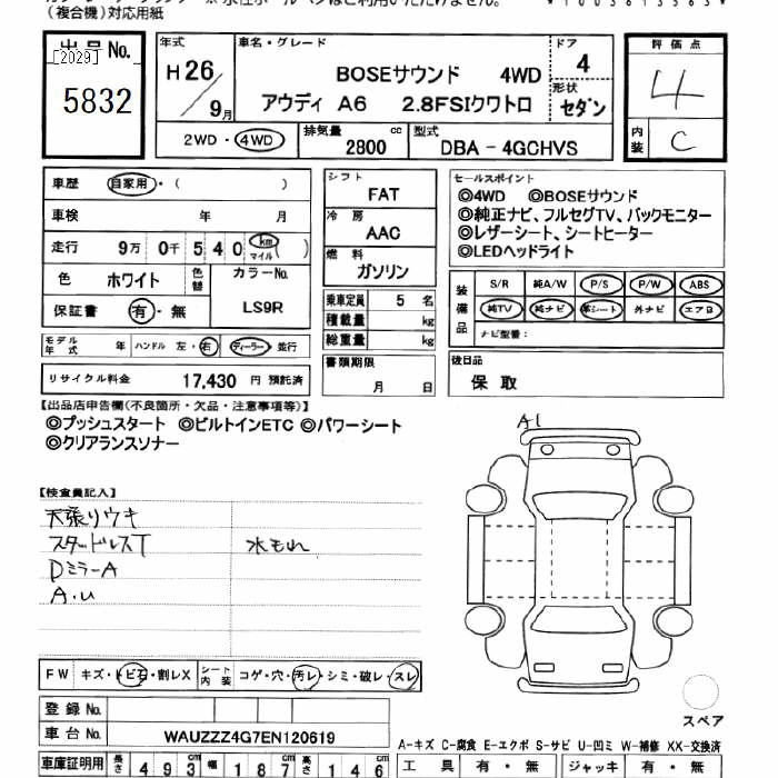AUDI A6 AVANTE 2014 г., лот № 5832