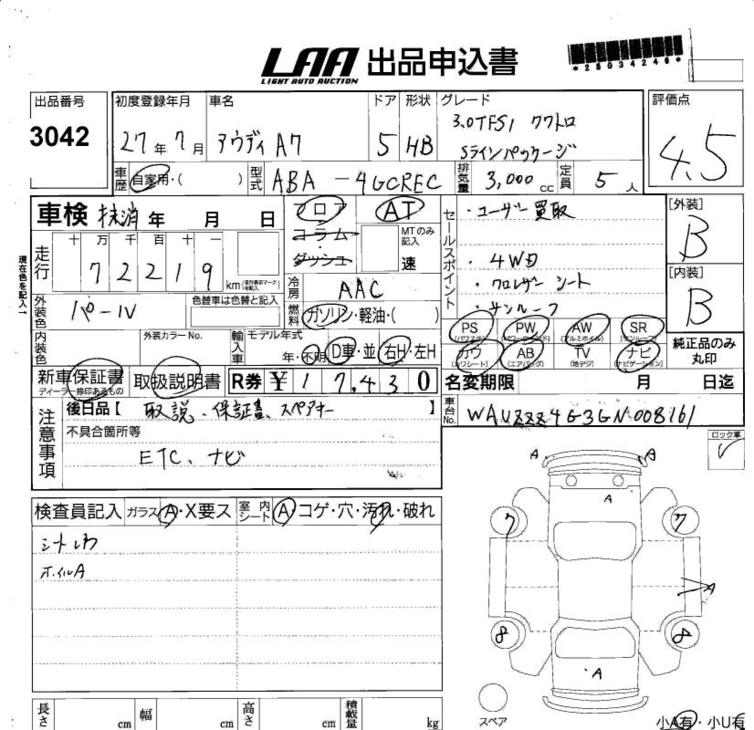 | 3.0 TFSI QUATTRO | ABA-4GCREC | CRE | Full-time 4WD | 7AT | 2994cc | 333ps(245kW)/5500~6500rpm | AИ-95 | 9 240 000 | |
