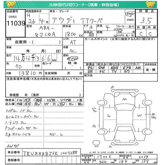 AUDI TT 2014 г., лот № 11039