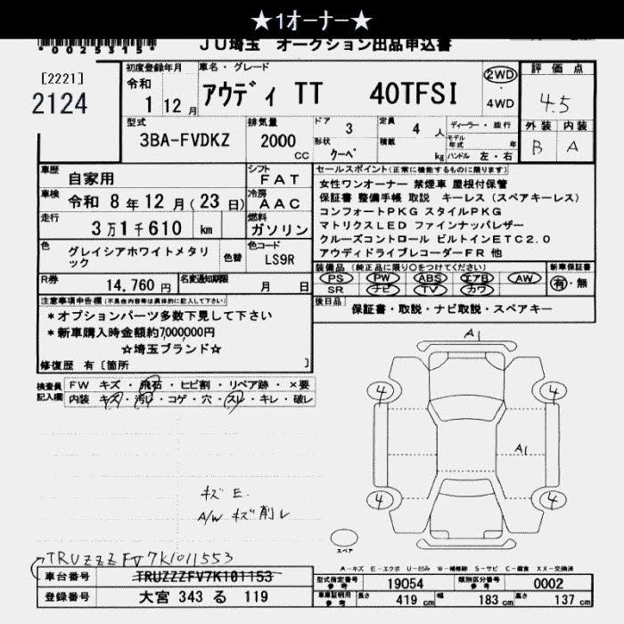 AUDI TTCOUPE 2019 г., лот № 2124
