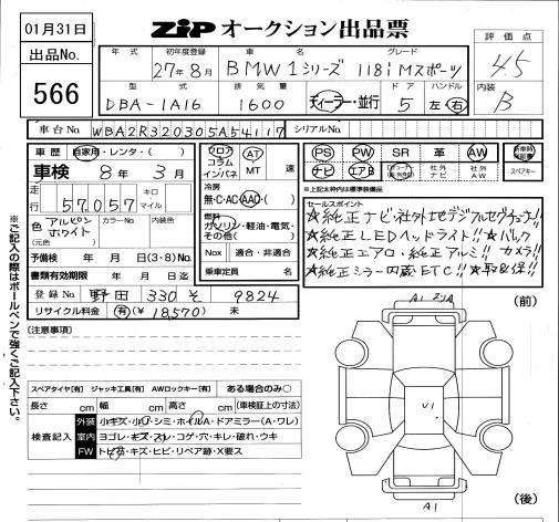 | 118I SPORT | DBA-1A16 | N13B16A | FR | 8AT | 1598cc | 136ps(100kW)/4400~6450rpm | AИ-95 | 3 380 000 | |