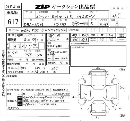 | 118D M SPORT | LDA-1S20 | B47D20A | FR | 8AT | 1995cc | 150ps(110kW)/4000rpm | Дизельное топливо | 4 050 000 | |