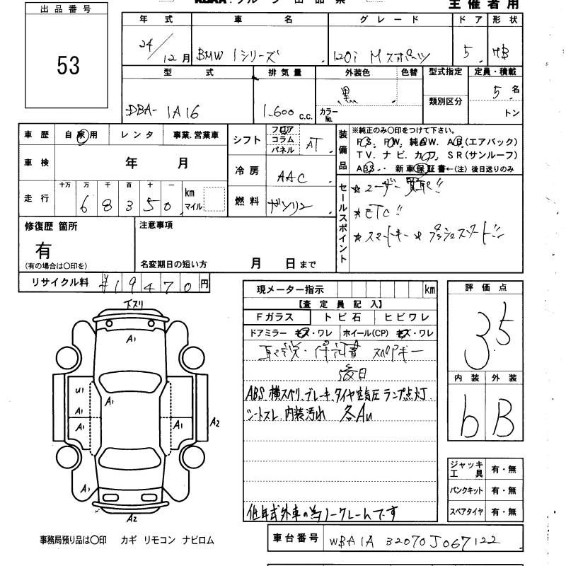 | M135I | DBA-1B30 | N55B30A | FR | 8AT | 2979cc | 320ps(235kW)/5800rpm | AИ-95 | 5 490 000 | |