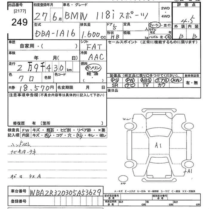 | 118I | DBA-1A16 | N13B16A | FR | 8AT | 1598cc | 136ps(100kW)/4400~6450rpm | AИ-95 | 2 980 000 |