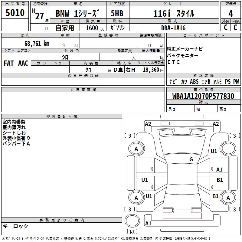| 120I M SPORT | DBA-1A16 | N13B16A | FR | 8AT | 1598cc | 177ps(130kW)/5000rpm | AИ-95 | 4 120 000 | |