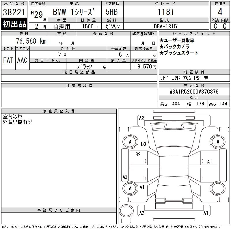 | 118I | DBA-1R15 | B38B15A | FR | 8AT | 1498cc | 136ps(100kW)/4400rpm | AИ-95 | 3 170 000 |