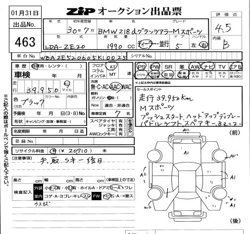 | 218i GRAN TOURER LUXURY | DBA-6V15 | B38A15A | FF | 7AT | 1498cc | 140ps(103kW)/4600rpm | AИ-95 | 4 660 000 | |