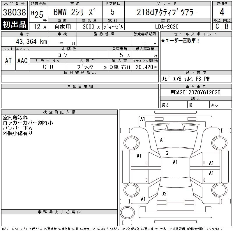 BMW 2 SERIES 2013 г., лот № 38038