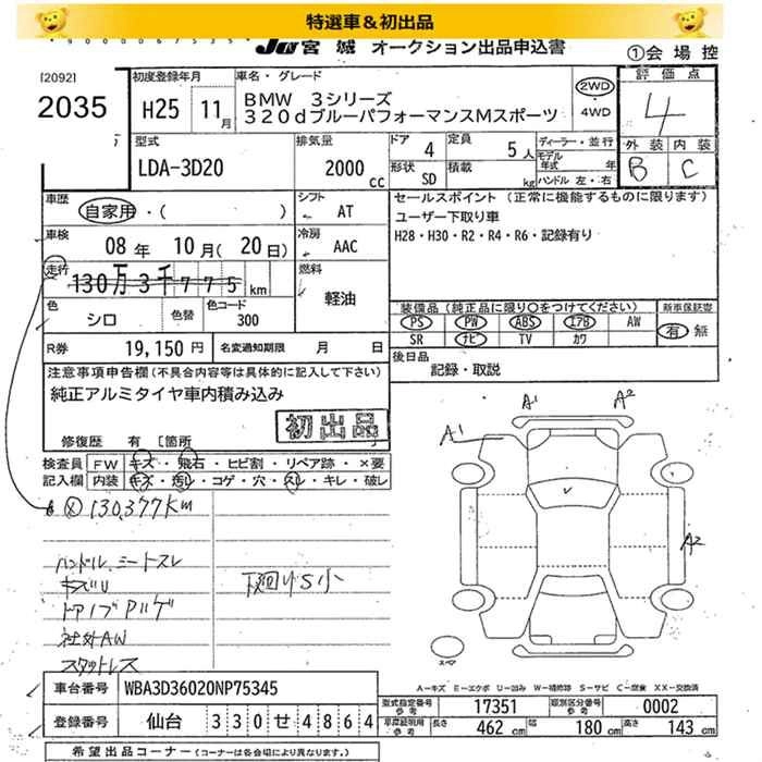 | 320D M SPORT | LDA-3D20 | N47D20C | FR | 8AT | 1995cc | 184ps(135kW)/4000rpm | Дизельное топливо | 5 230 000 | |