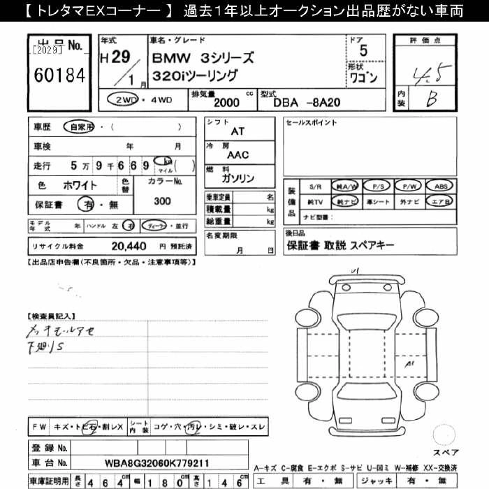| 340i TOURING LUXURY | DBA-8B30 | B58B30A | FR | 8AT | 2997cc | 326ps(240kW)/5500rpm | AИ-95 | 8 500 000 | |