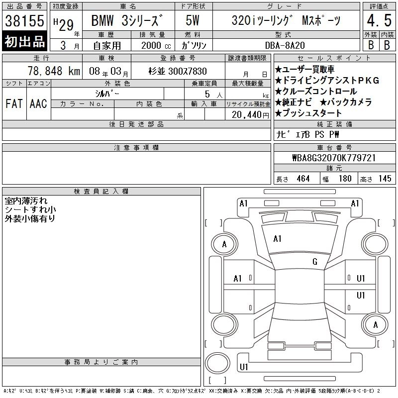 | 340i TOURING LUXURY | DBA-8B30 | B58B30A | FR | 8AT | 2997cc | 326ps(240kW)/5500rpm | AИ-95 | 8 350 000 | |