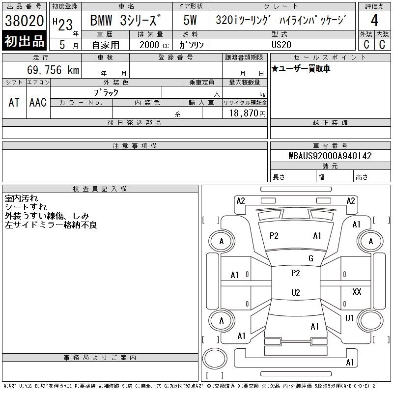 320i TOURING LBA-US20 N43B20A FR 6AT 1995cc 170ps(125kW)/6700rpm AИ-95 4 650 000