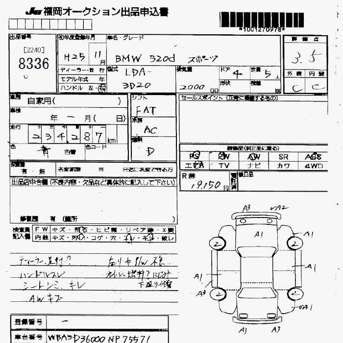 | 335i TOURING | DBA-3A30 | N55B30A | FR | 8AT | 2979cc | 306ps(225kW)/5800rpm | AИ-95 | 7 140 000 | |