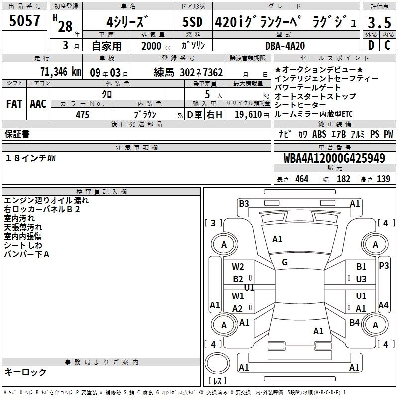 | 420i GRAN COUPE LUXURY | DBA-4D20 | B48B20A | FR | 8AT | 1998cc | 184ps(135kW)/5000rpm | AИ-95 | 5 710 000 | |