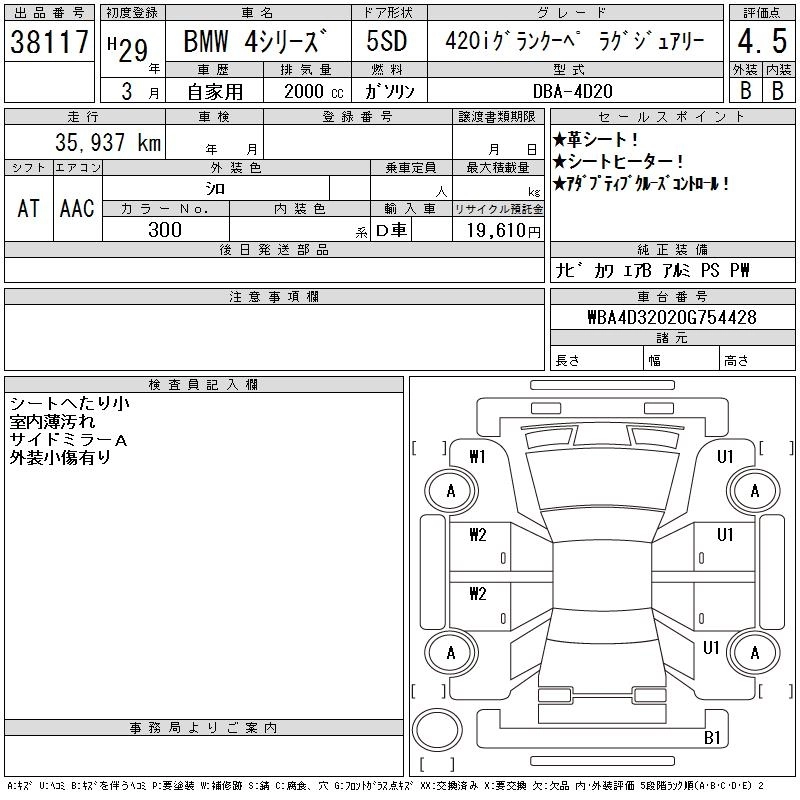 | 420I GRAN COUPE STYLE MEISTER | DBA-4D20 | B48B20A | FR | 8AT | 1998cc | 184ps(135kW)/5000rpm | AИ-95 | 6 510 000 | |
