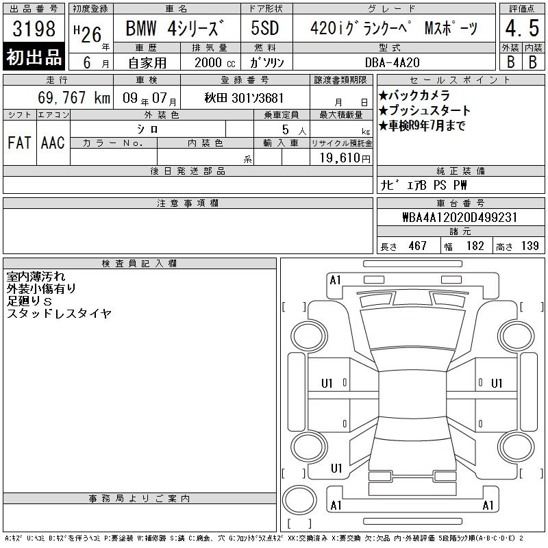 | 420i GRAN COUPE M SPORT | DBA-4A20 | ---- | FR | 8AT | 1997cc | 184ps(135kW)/5000rpm | AИ-95 | 5 570 000 | |