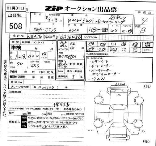 BMW 5 SERIES 2021 г., лот № 508