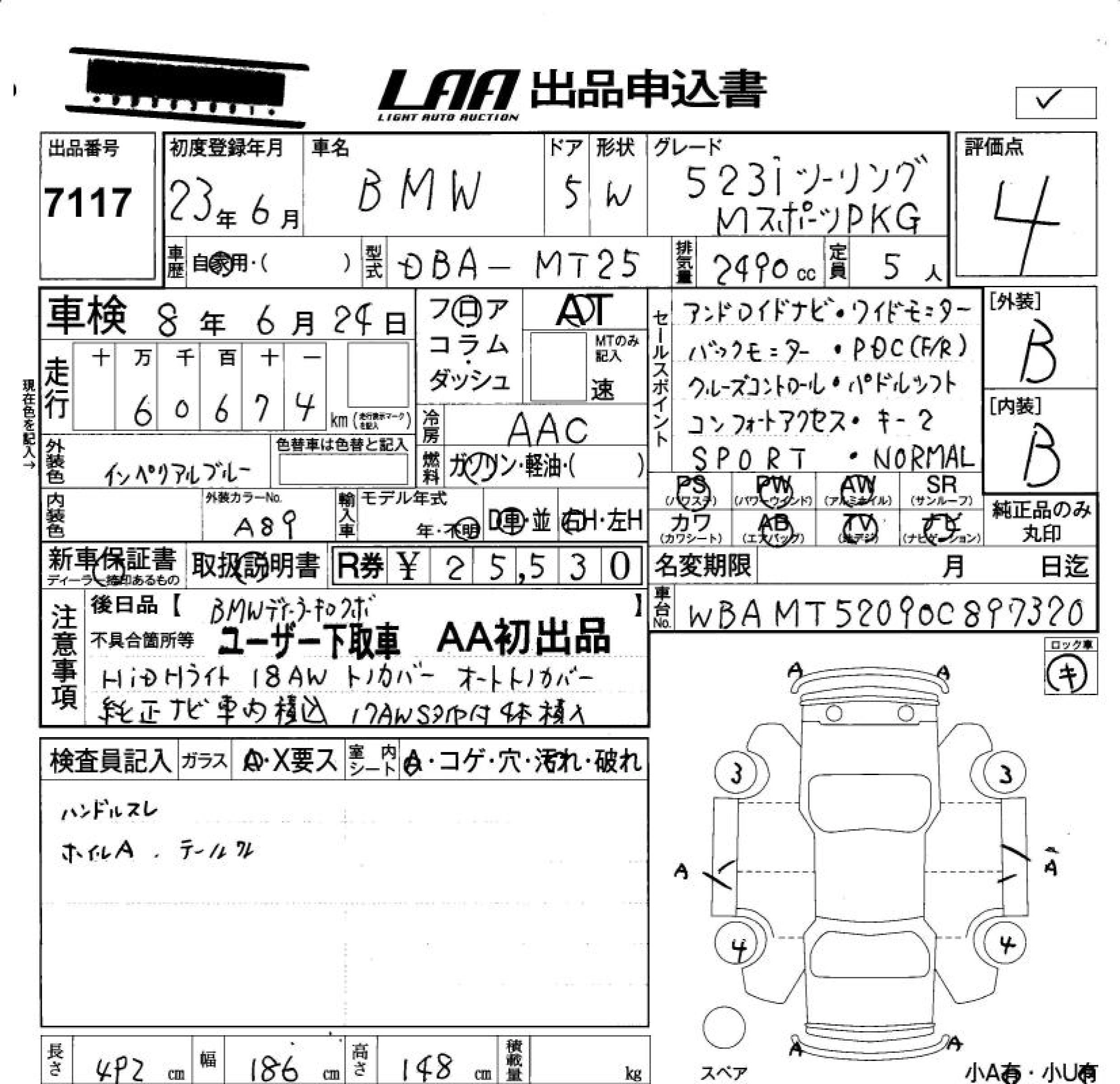 | 528i TOURING | DBA-XL28 | N20B20A | FR | 8AT | 1997cc | 245ps(180kW)/5000rpm | AИ-95 | 7 450 000 | |
