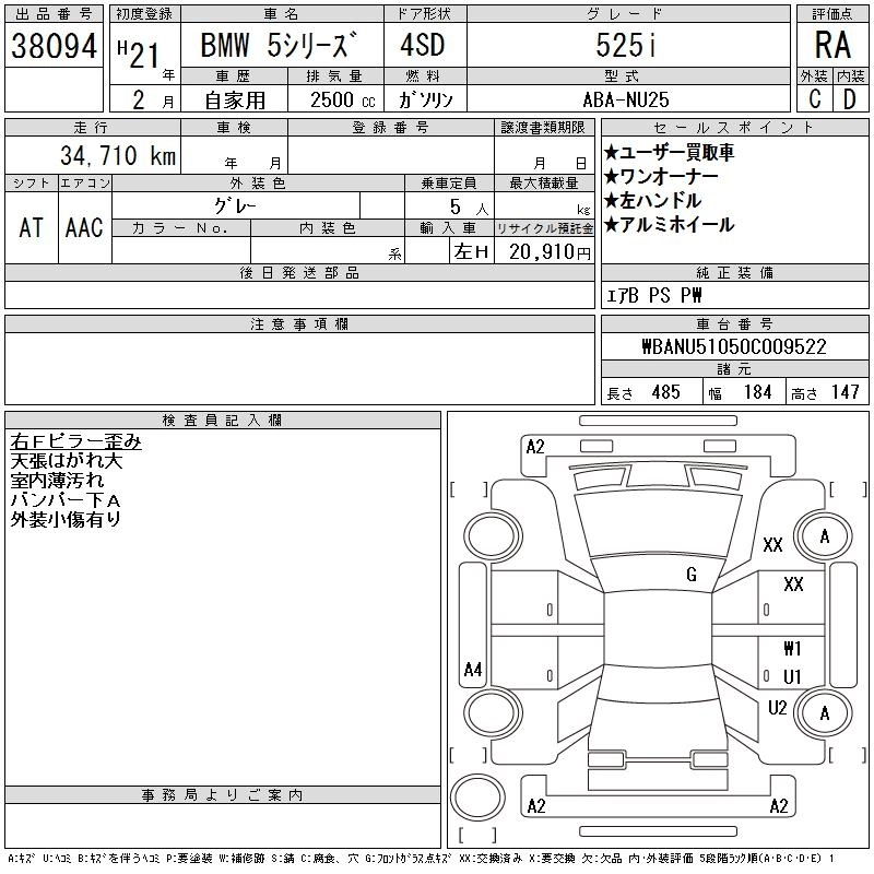 | 535I GRAN TURISMO | CBA-SN30 | N55B30A | FR | 8AT | 2979cc | 306ps(225kW)/5800rpm | AИ-95 | 8 780 000 | |