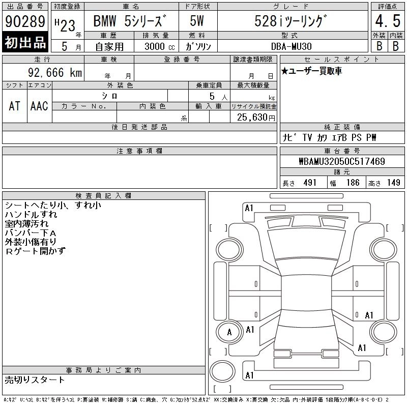 | 528i TOURING | DBA-XL28 | N20B20A | FR | 8AT | 1997cc | 245ps(180kW)/5000rpm | AИ-95 | 7 450 000 | |