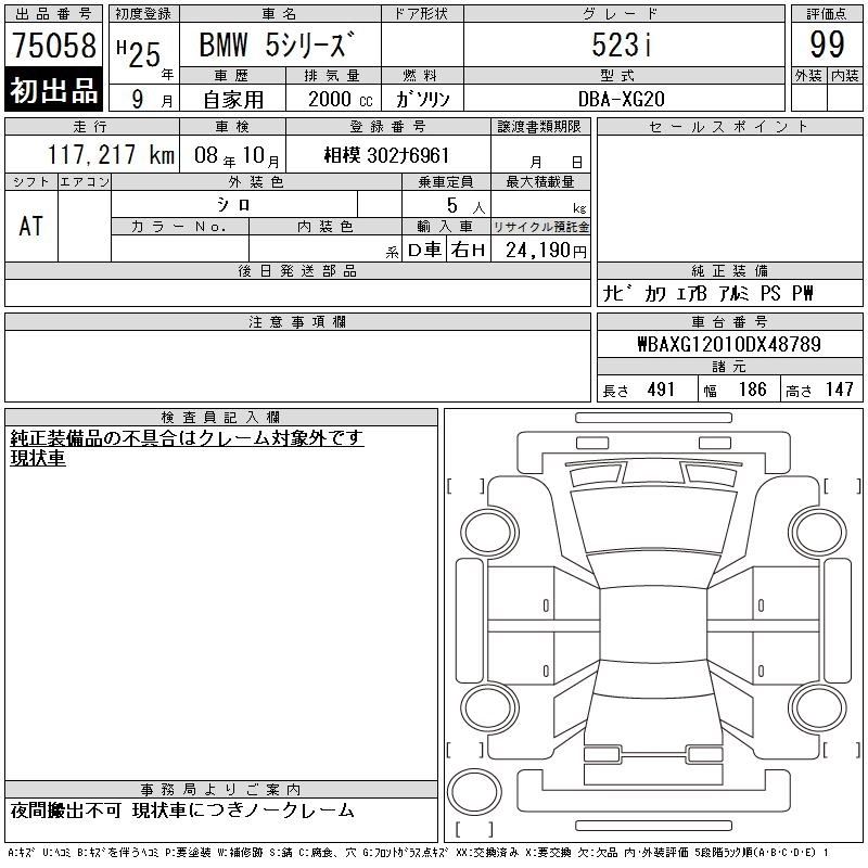 BMW 5 SERIES 2013 г., лот № 75058