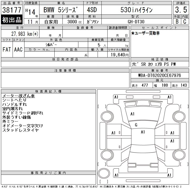 | 530i TOURING HI-LINE PACKAGE | GH-DS30 | 30 6S | FR | 5AT | 2979cc | 231ps(170kW)/5900rpm | AИ-95 | 6 760 000 | |