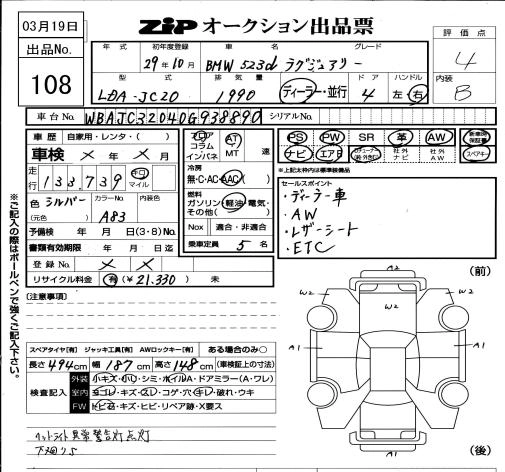 | 523D TOURING LUXURY | LDA-JM20 | B47D20A | FR | 8AT | 1995cc | 190ps(140kW)/4000rpm | Дизельное топливо | 8 130 000 | |