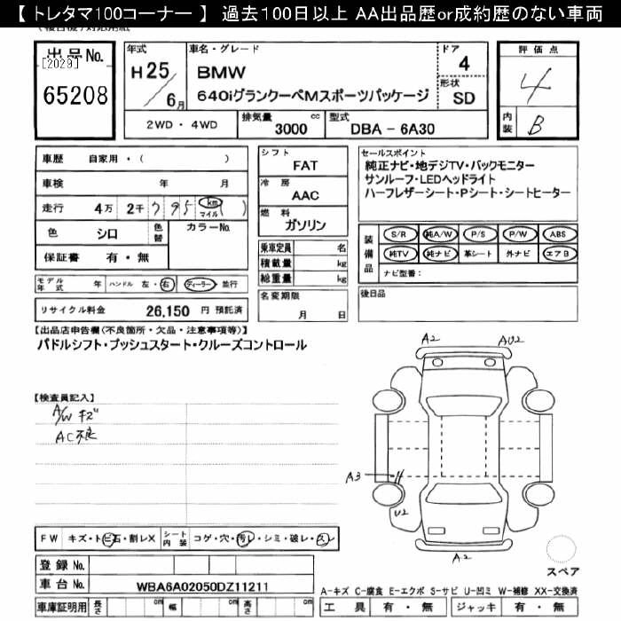 | 640i COUPE | DBA-LW30C | N55B30A | FR | 8AT | 2979cc | 320ps(235kW)/5800rpm | AИ-95 | 9 450 000 | |