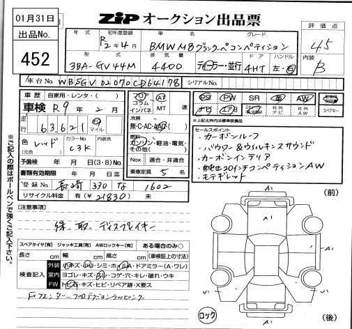 | GRAN COUPE COMPETITION | 3BA-GV44M | S63B44B | Full-time 4WD | 8AT | 4394cc | 625ps(460kW)/6000rpm | AИ-95 | 23 970 000 | |