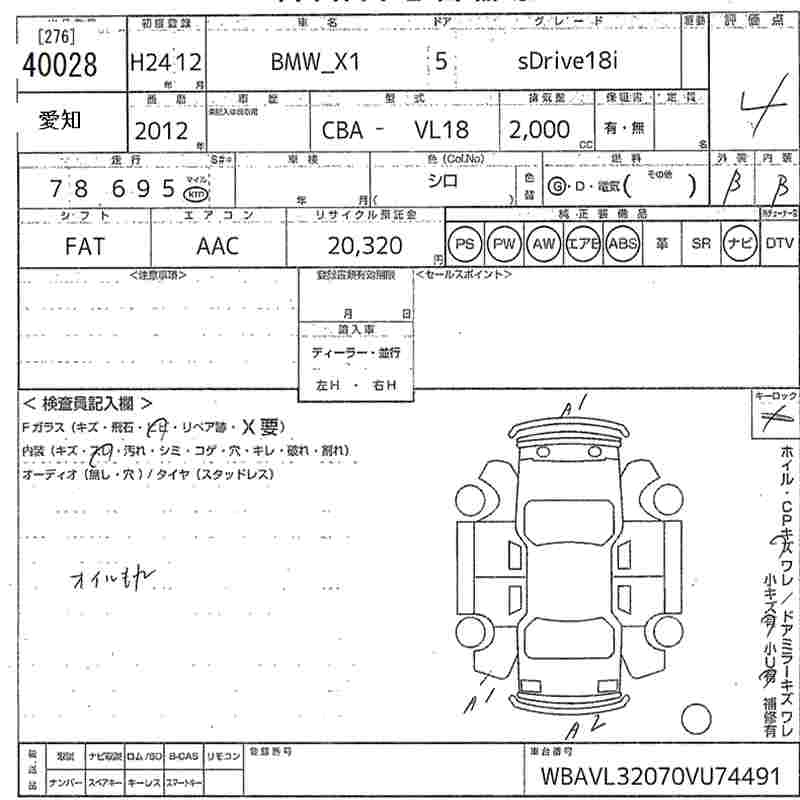 | S DRIVE 18I X LINE | CBA-VL18 | N46B20B | FR | 6AT | 1995cc | 150ps(110kW)/6400rpm | AИ-95 | 3 920 000 | |