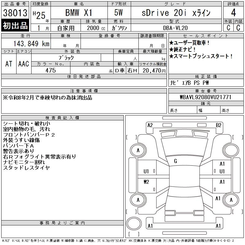 | X DRIVE 20I X LINE | DBA-VM20 | N20B20A | Full-time 4WD | 8AT | 1997cc | 184ps(135kW)/5000rpm | AИ-95 | 4 550 000 | |