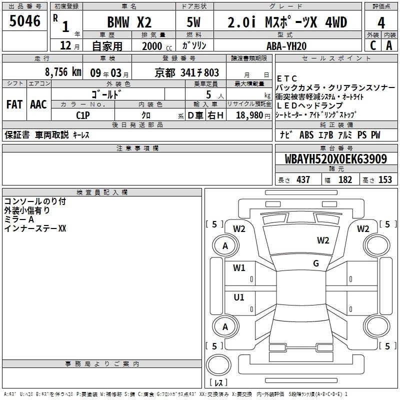 S DRIVE 18I M SPORT X DBA-YH15 B38A15A FF 7AT 1498cc 140ps(103kW)/4600rpm AИ-95 4 840 000