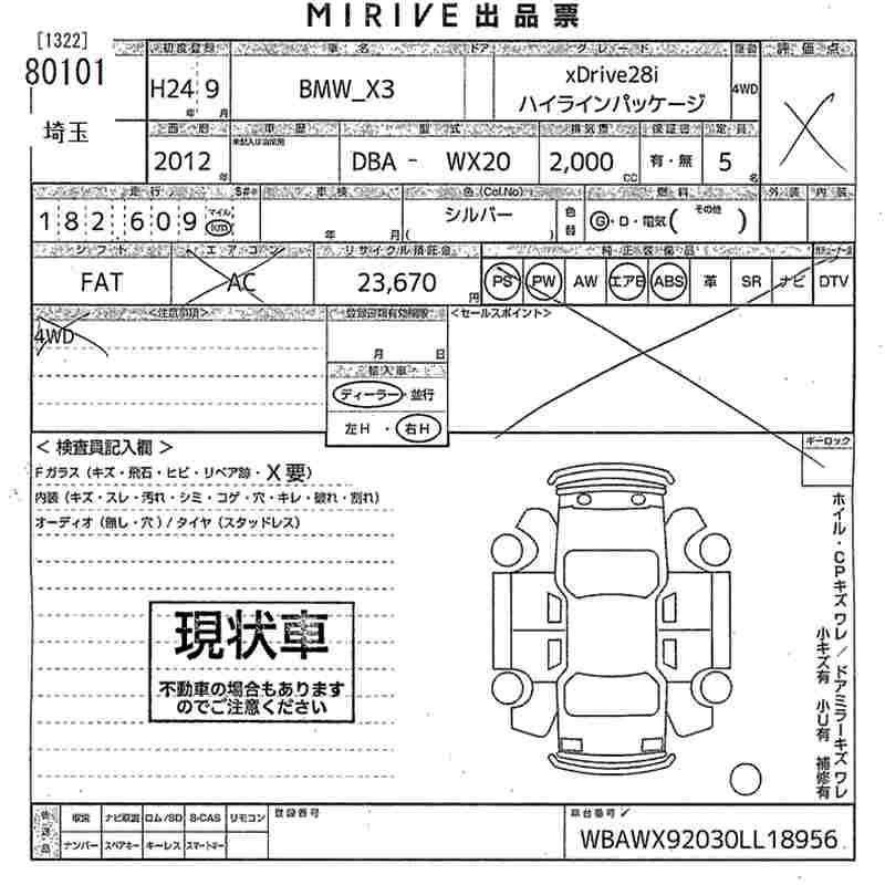| X DRIVE 20I | DBA-WX20 | N20B20A | Full-time 4WD | 8AT | 1997cc | 184ps(135kW)/5000rpm | AИ-95 | 5 410 000 |