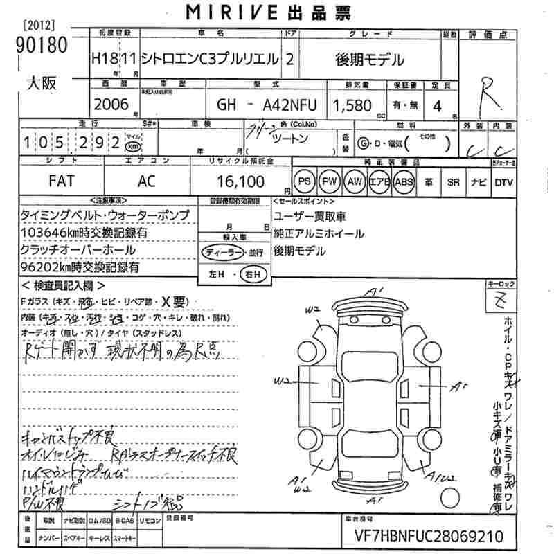 Статус продан Лот 90180 Аукцион MIRIVE Osaka Дата аукциона 29.01.2026