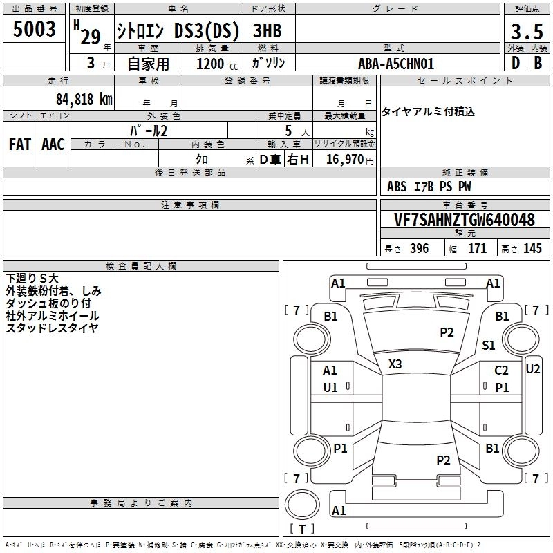 | DARK SIDE | ABA-A5CHN01 | HN01 | FF | 6AT | 1199cc | 110ps(81kW)/5500rpm | AИ-95 | 3 030 000 |