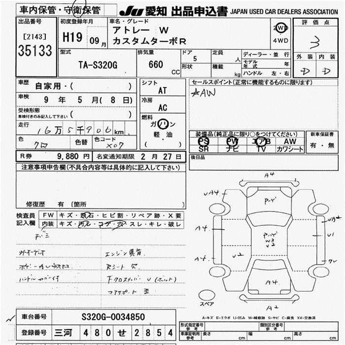 DAIHATSU ATRAI WAGON 2007 г., лот № 35133