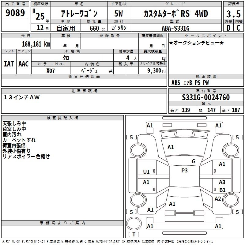 Год выпуска2013 Пробег 188 000 км КузовS331G Комплектация CUSTOM TURBO RS 4WD