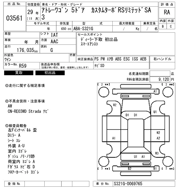 | CUSTOM TURBO RS LIMITED SA III | ABA-S321G | KF | FR | 4AT | 658cc | 64ps(47kW)/5700rpm | AИ-92 | 1 652 400 | |