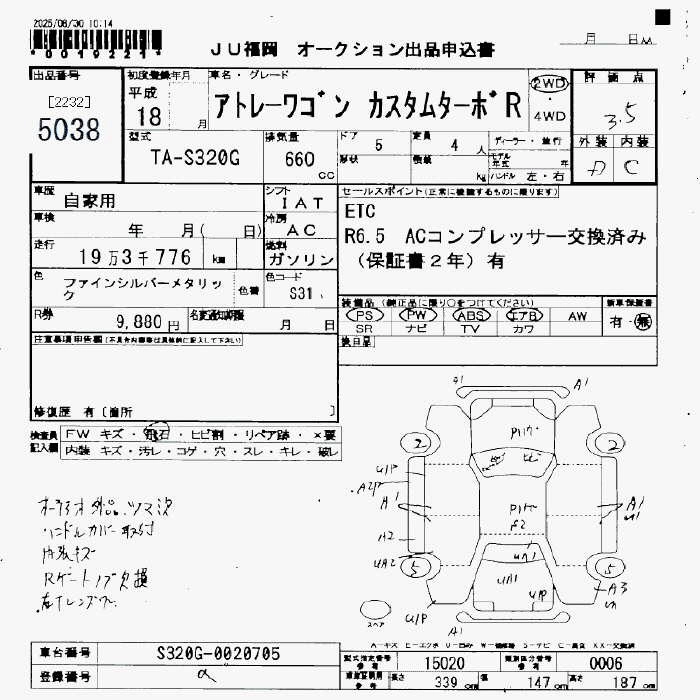 Статус выставлен на аукцион Лот 5038 Аукцион JU Fukuoka Дата аукциона 30.01.2026