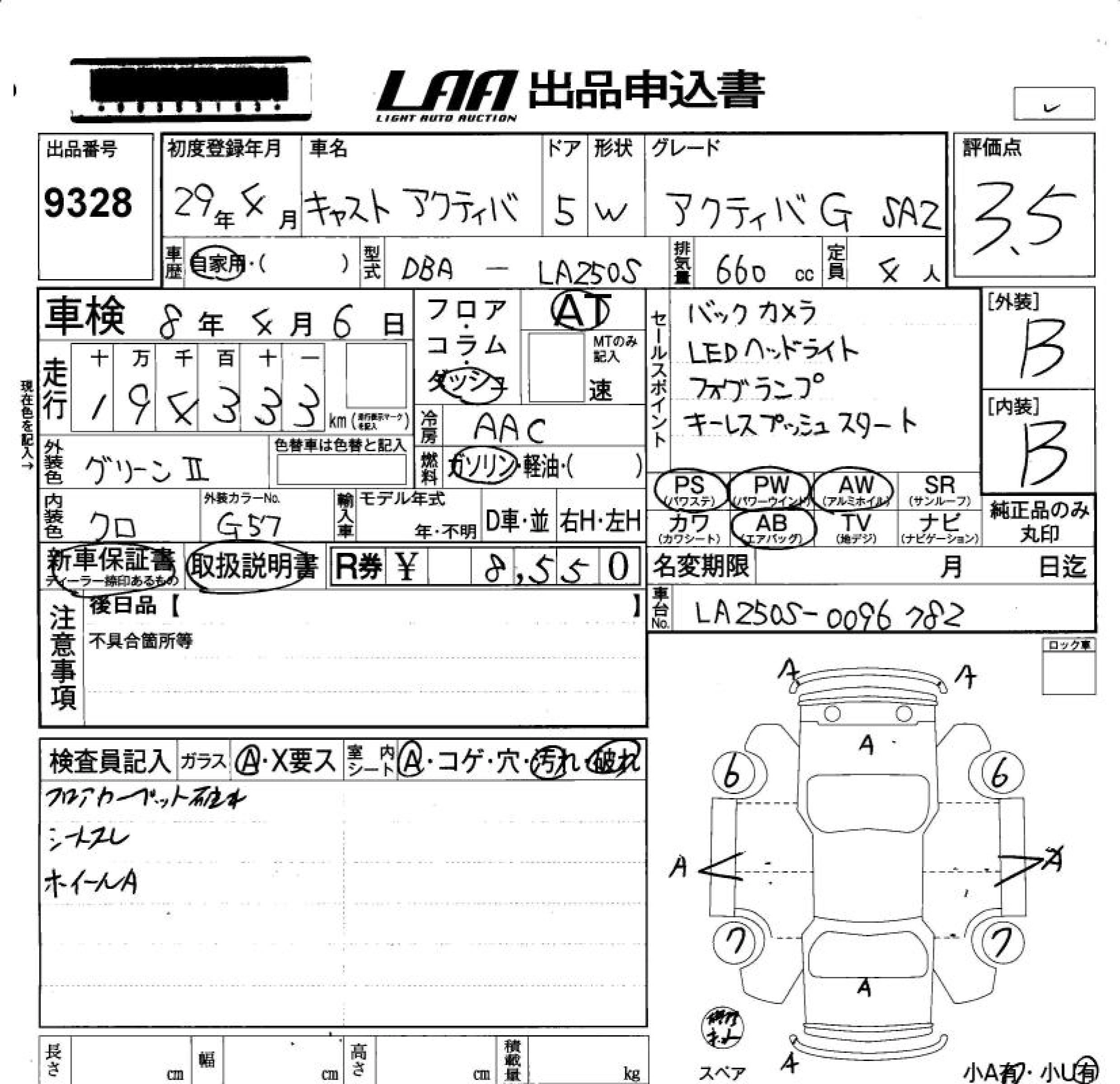| ACTIVA G TURBO PRIME COLLECTION SA III | DBA-LA250S | KF | FF | CVT | 658cc | 64ps(47kW)/6400rpm | AИ-92 | 1 582 200 | |