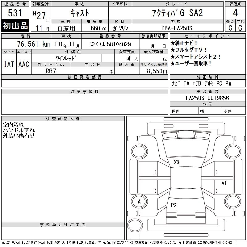 | ACTIVA G TURBO SA II | DBA-LA250S | KF | FF | CVT | 658cc | 64ps(47kW)/6400rpm | AИ-92 | 1 517 400 | |