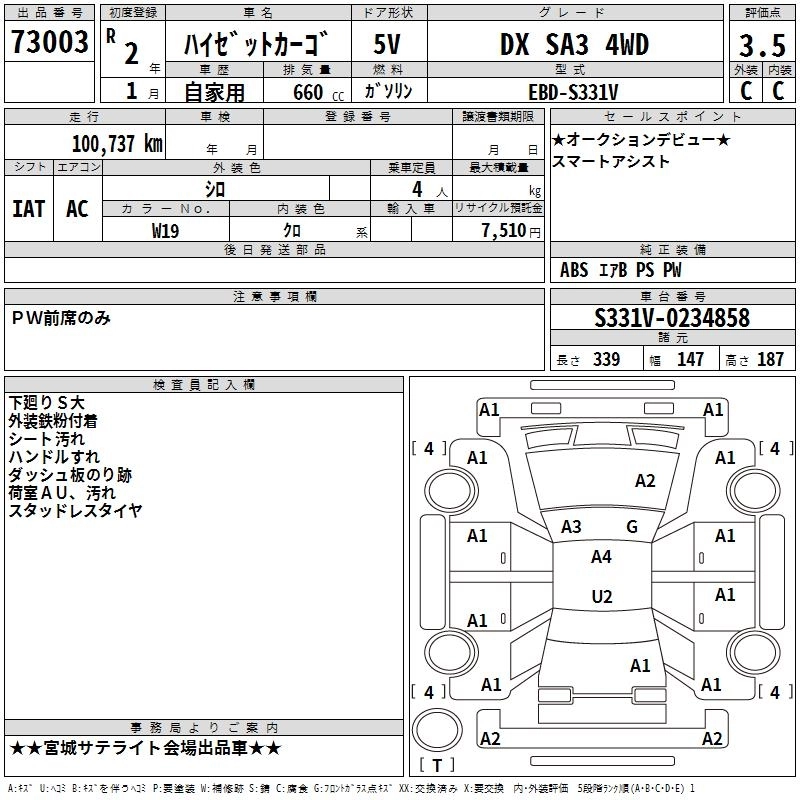 Объем660 сс Трансмиссия Автомат Привод 4WD Оценка3.5