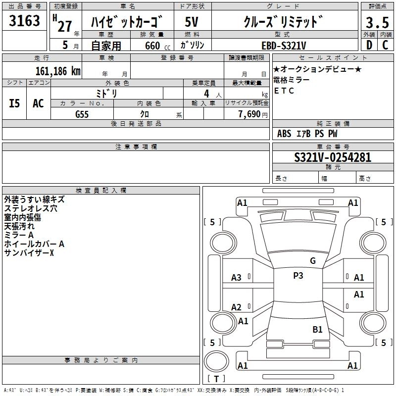 DAIHATSU HIJET CARGO 2015 г., лот № 3163